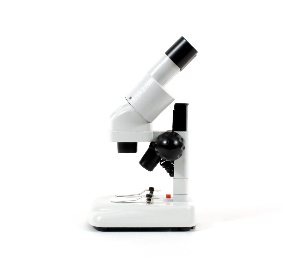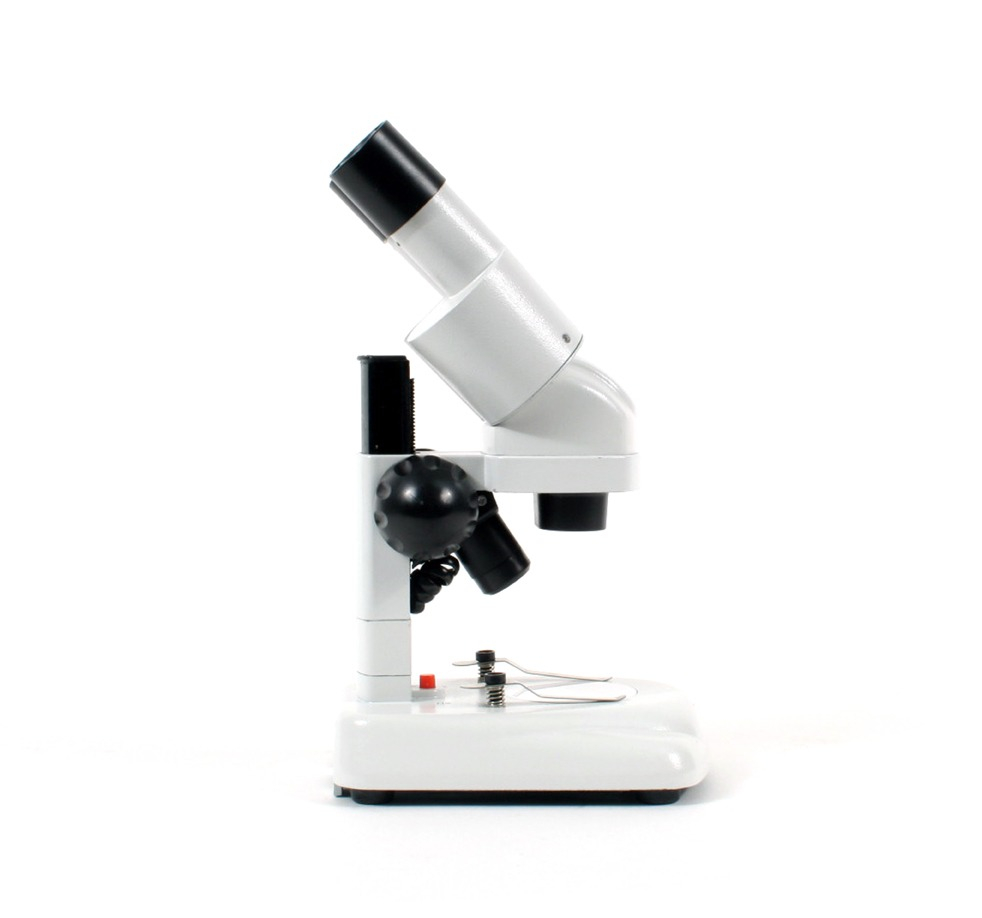 Microscop prevăzut cu sistem de precizie şi focusare prin şuruburi, fixate pe cele 2 laturi ale stativului.