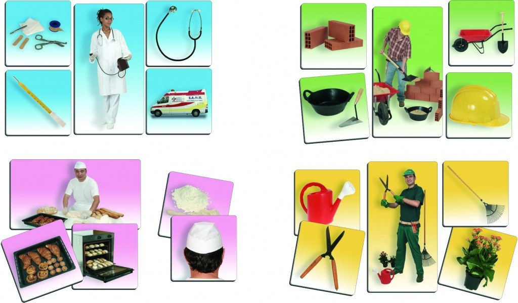 60 carti: 12 carti cu meserii + 48 carti asociate cu meseriile (4 carti pe meserie).