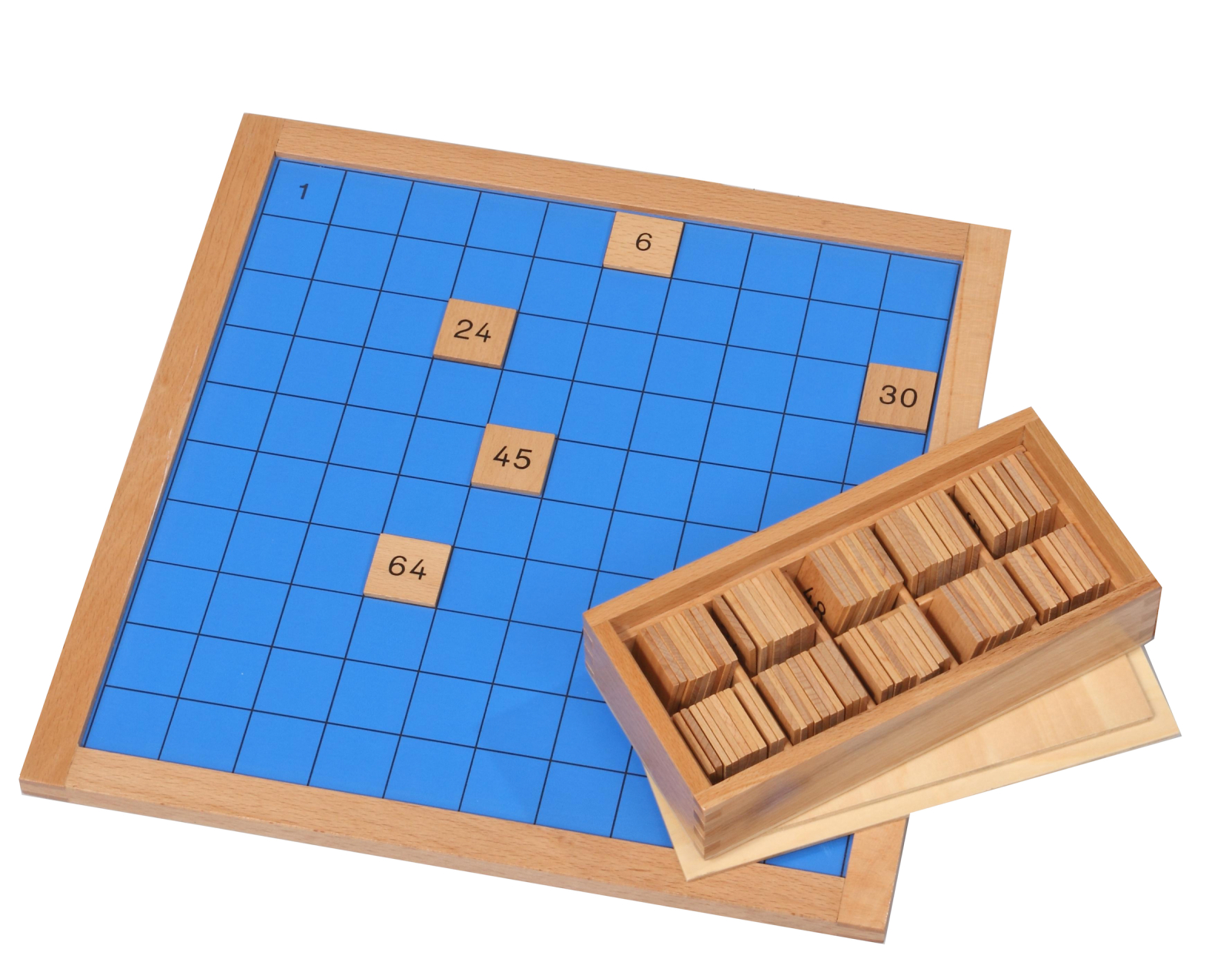 Setul conține o tabla de lucru de 34x34 cm, inramata și o cutie cu 100 de placute antiderapante numerotate de la 1 la 100.