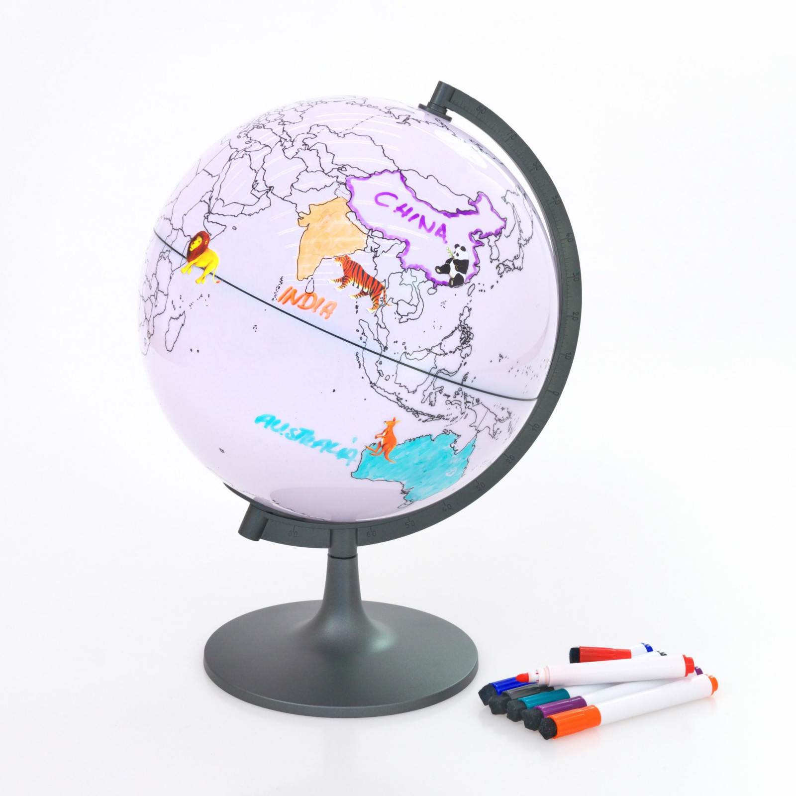 Acest glob va fi un instument foare util pentru lectiile de geografie sau biologie. Desenati pe el toate informatiile care va sunt necesare cu ajutorul markerelor, si apoi le puteti sterge. Acesta ii va ajuta pe copii sa isi imbunatateasca cunostintele despre natura si intreaga lume. Setul include: • 6 markere lavabile cu stergere uscata • diametru glob: 28 cm